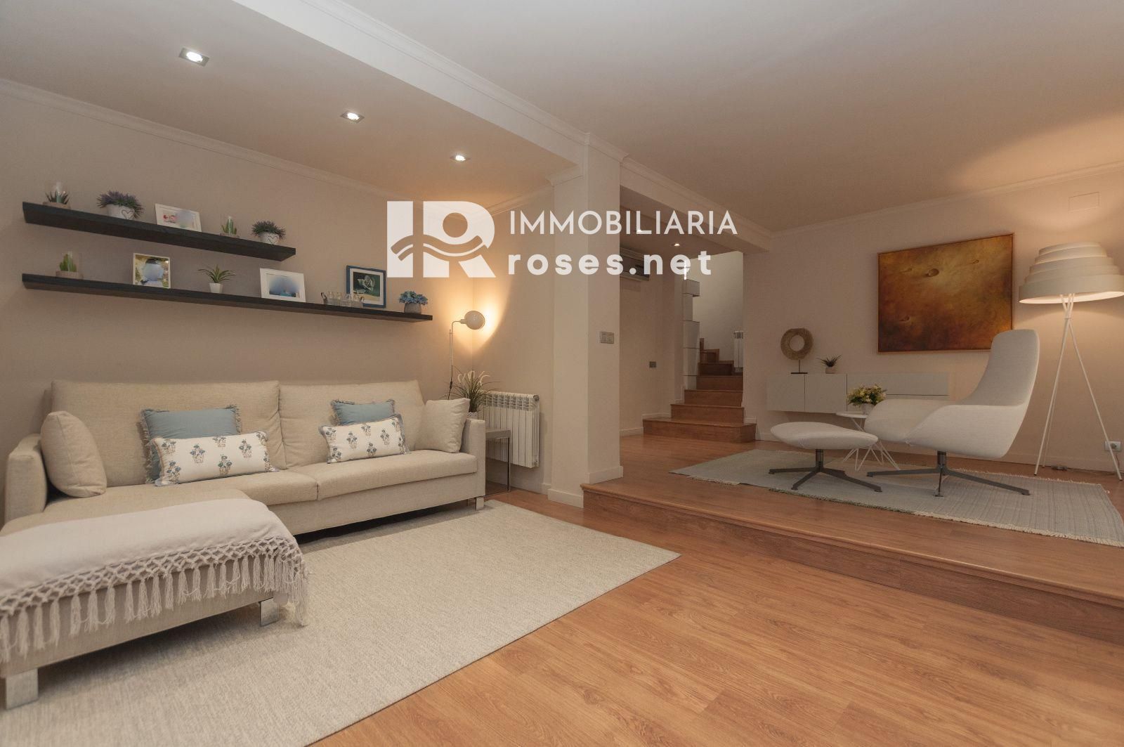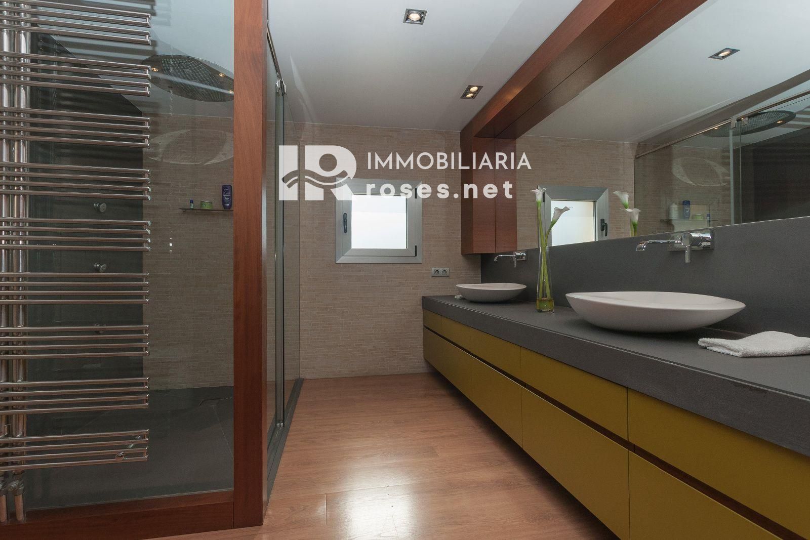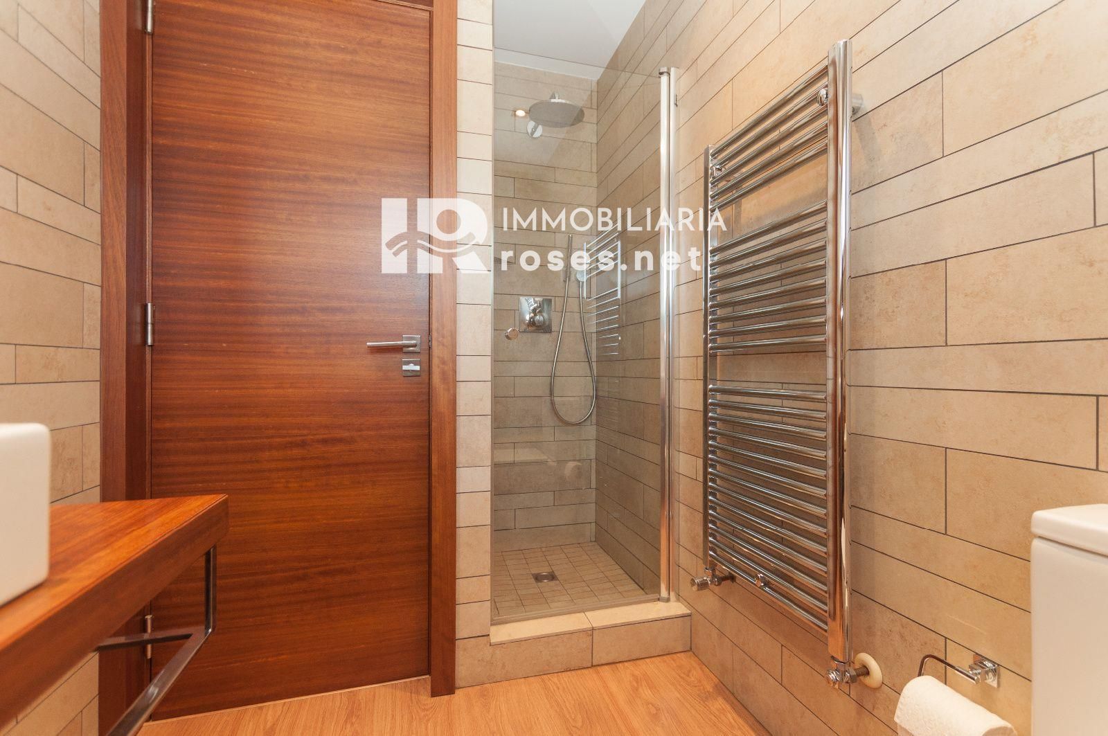 Te proposem a Roses, a la zona de La Cuana, una casa d'alt standing, moderna i “molt chic”! Una increïble casa de disseny, que ofereix tot el confort i comoditat per ser la llar perfecte! A la planta baixa, trobareu un ampli saló menjador molt assolellat, una cuina amb illa totalment equipada i moderna, i un lavabo per a convidats. Igualment els propietaris van crear un espai paradisíac, amb una bonica piscina climatitzada envoltada de vegetació, amb hidromassatge i contracorrent, a una gran terrassa amb radiadors i AACC amb bomba de calor, equipada amb forn de llenya, cuina d'estiu, menjador, zona solàrium i gran safareig/traster. Radiadors, màquina d'AACC amb bomba de calor, tot cobert amb una cúpula corredissa que permet fer servir l'estada tant a l'estiu com a l'hivern. A la primera planta trobem dos banys complets i tres habitacions dobles, una és una gran suite amb terrassa privada, bany complet (dutxa italiana amb raigs hidromassatge) i un ampli i modern vestidor. Les dues habitacions restants tenen armaris de paret a mida. El segon bany complet equipat amb dutxa italiana. La casa té un garatge de 32m2 per a dos cotxes amb accés directe a linterior de la vivenda. Habitació/traster amb accés des del jardí de la vivenda, gran jardí amb oliveres, amb espai exclusiu per a mascota i capacitat per estacionar 2 vehicles més. Tota la casa està equipada amb alumini doble amb aïllament acústic, aire condicionat reversible i calefacció amb gasoil. Es troba en una zona perfecta, a 500m de totes les comoditats del poble i de la magnífica platja de Roses!