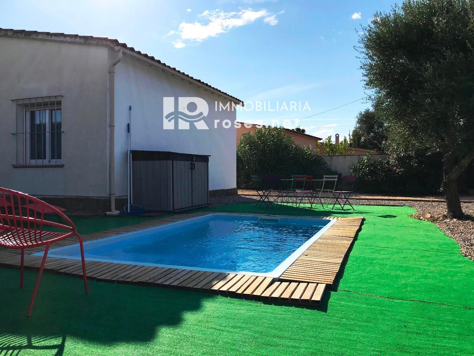 Dieses Haus verfügt über eine Saisonvermietungslizenz (HUTG-010825).Das Haus befindet sich in der Wohngebiet Mas Boscà, zwischen zwei Straßen (zwei Eingänge zum Garten), etwa 3 km von Roses und nur weniger Schritten von den Feldern entfernt. Es besteht aus einem Wohn- / Esszimmer, einer separaten Küche, zwei Schlafzimmern mit Einbauschränken, einem Badezimmer mit Dusche und einem W.C.. Es verfügt über doppelt verglaste PVC-Fenster, Klimaanlage und wird möbliert verkauft. Im Außenbereich gibt es eine überdachte Terrasse, einen Garten mit Pool und einen Abstellraum. Optional kann das Haus erweitert oder eine zweite Etage gebaut werden. Das Haus eignet sich ideal zum ganzjährigen Wohnen, als Zweitwohnsitz für angenehme Ferien sowie zur saisonalen Vermietung.
