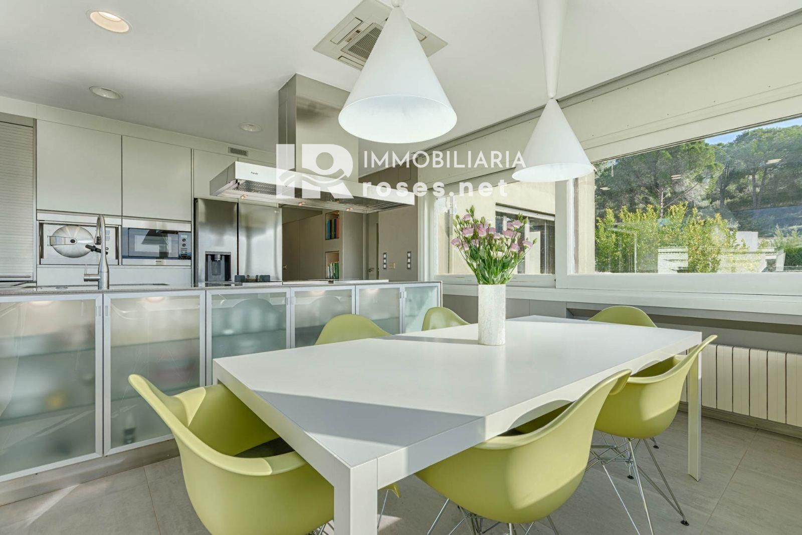 El garaje, accesible por una rampa, ofrece espacio para al menos tres coches e incluye lavadero, despacho y bodega, ideales para almacenar vino y organizar su colección privada. La zona exterior es un auténtico oasis: un amplio jardín con árboles, terrazas y solárium permiten disfrutar del sol de la comarca. La piscina privada climatizada se convierte en el epicentro del ocio, junto a una cocina de verano con barbacoa, comedor y baño. Un apartamento independiente con habitación en suite ofrece privacidad a sus invitados. Complementan la propuesta un gimnasio con sauna, ducha y baño, perfecto para relajarse y cuidar de uno mismo.