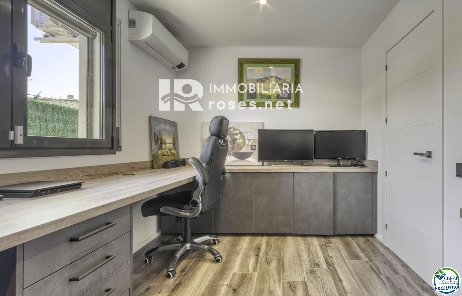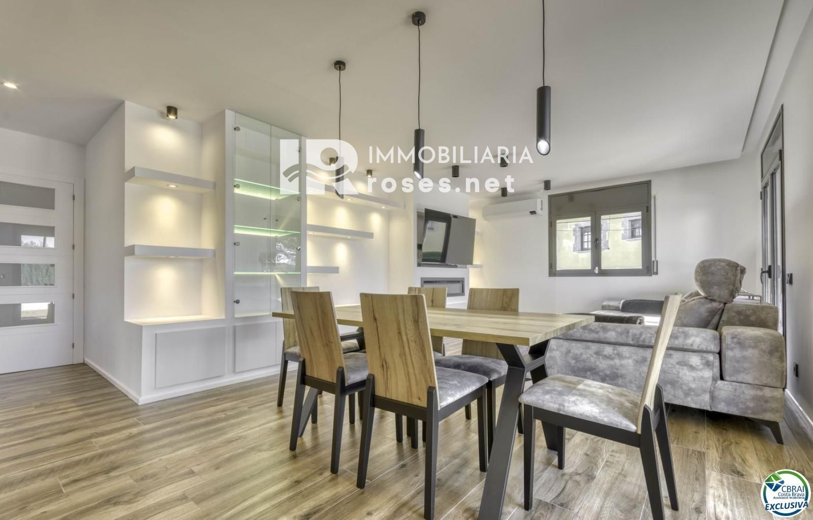 La cocina office de diseño es simplemente impresionante, encimeras con una isla central y electrodomésticos de alta gama. El comedor, con su chimenea, es perfecto para disfrutar de comidas en familia o con amigos en los días más fríos del año.