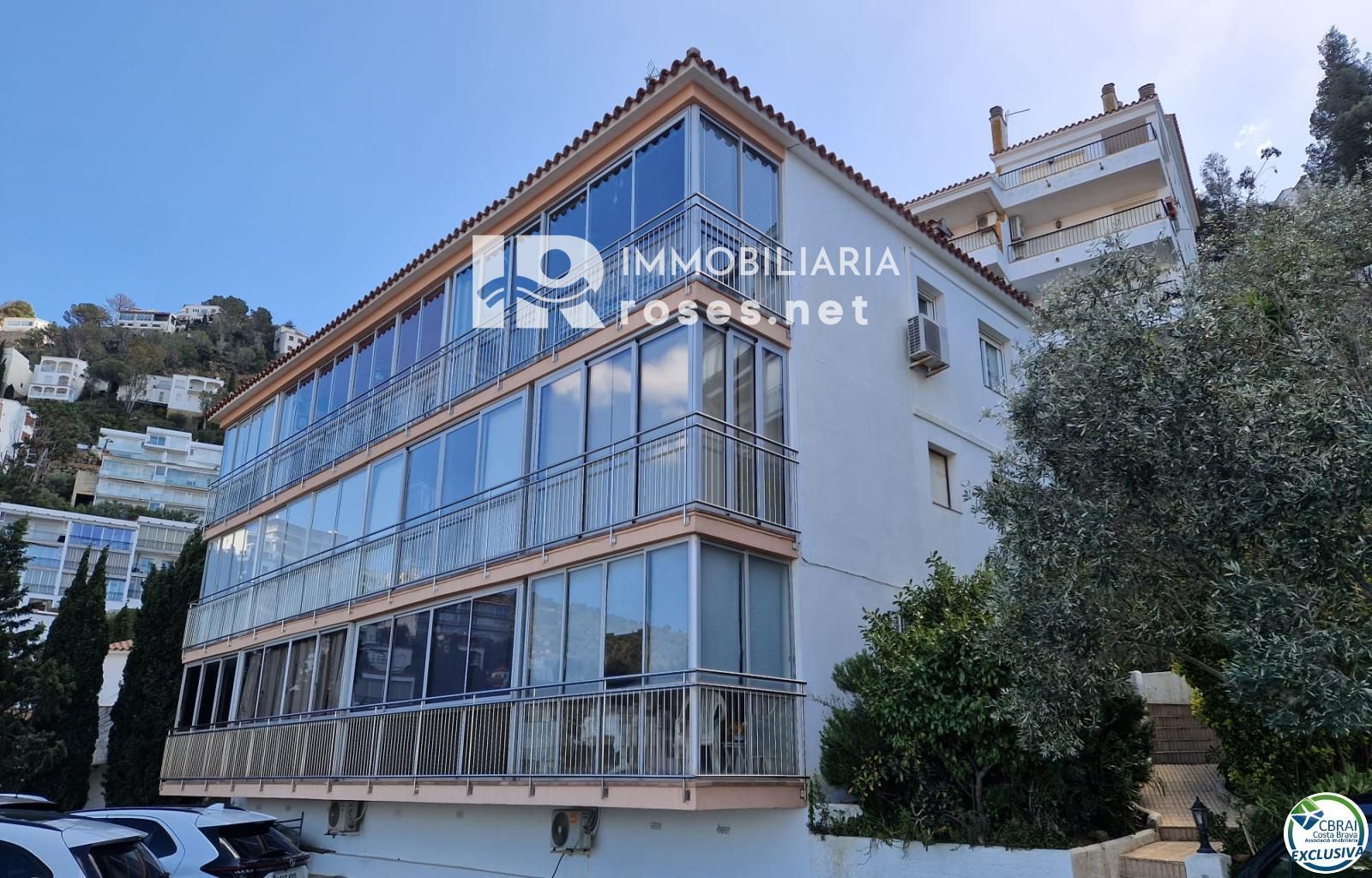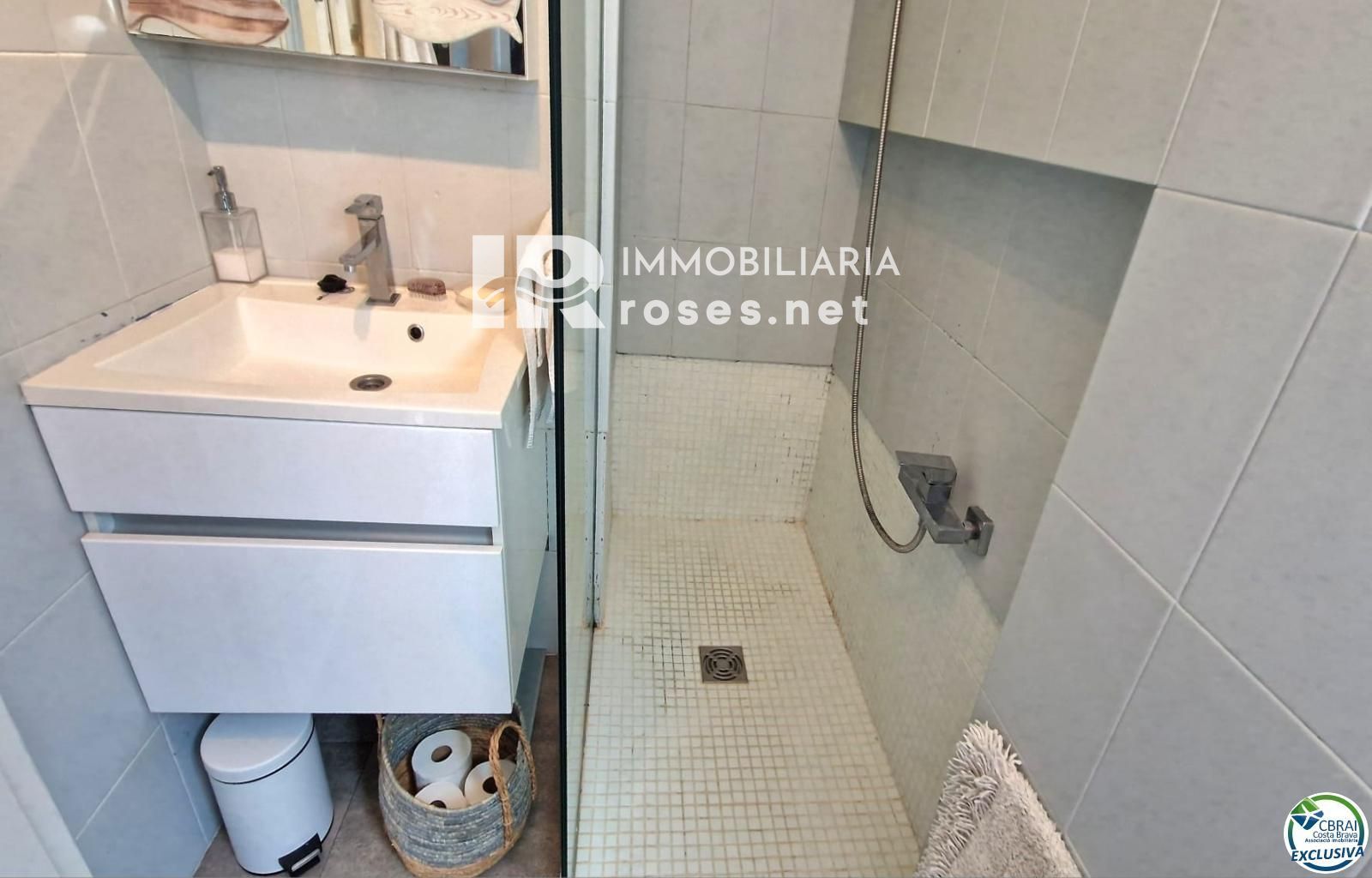 Se vende acogedor apartamento situado en la tranquila y privilegiada zona de Puig Rom, en Roses. La vivienda cuenta con una superficie construida de 55 m² perfectamente distribuidos para aprovechar al máximo cada espacio. Dispone de 2 habitaciones dobles una de ellas en el salon, ideales tanto para uso familiar como para recibir invitados, y 1 baño completo en buen estado de conservación. La propiedad se encuentra en buen estado, lista para entrar a vivir sin necesidad de grandes reformas. Destaca su orientación oeste, que permite disfrutar de una excelente luz natural durante la tarde y de bonitas puestas de sol. Además, cuenta con una agradable terraza de 14 m², perfecta para relajarse, comer al aire libre o disfrutar de las vistas laterales al mar y entorno natural. El apartamento es totalmente exterior, lo que garantiza luminosidad y ventilación en todas las estancias. Entre sus extras, incluye plaza de parking comunitaria, un valor añadido muy importante en la zona. Ubicado en un entorno rodeado de árboles y montaña, ofrece tranquilidad y conexión con la naturaleza, sin renunciar a la cercanía de todos los servicios y del centro de Roses. Una excelente oportunidad tanto como residencia habitual, segunda vivienda o inversión.