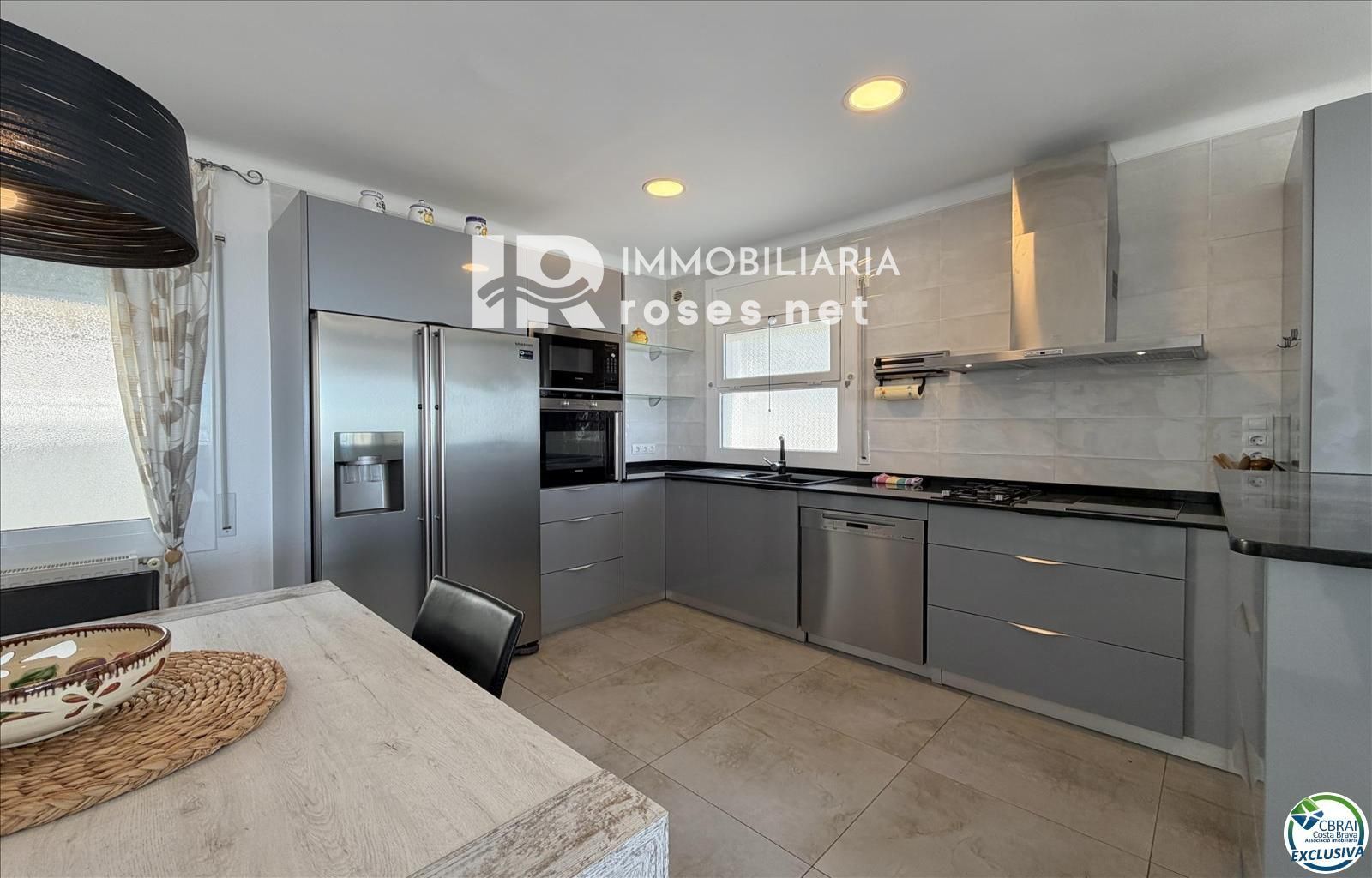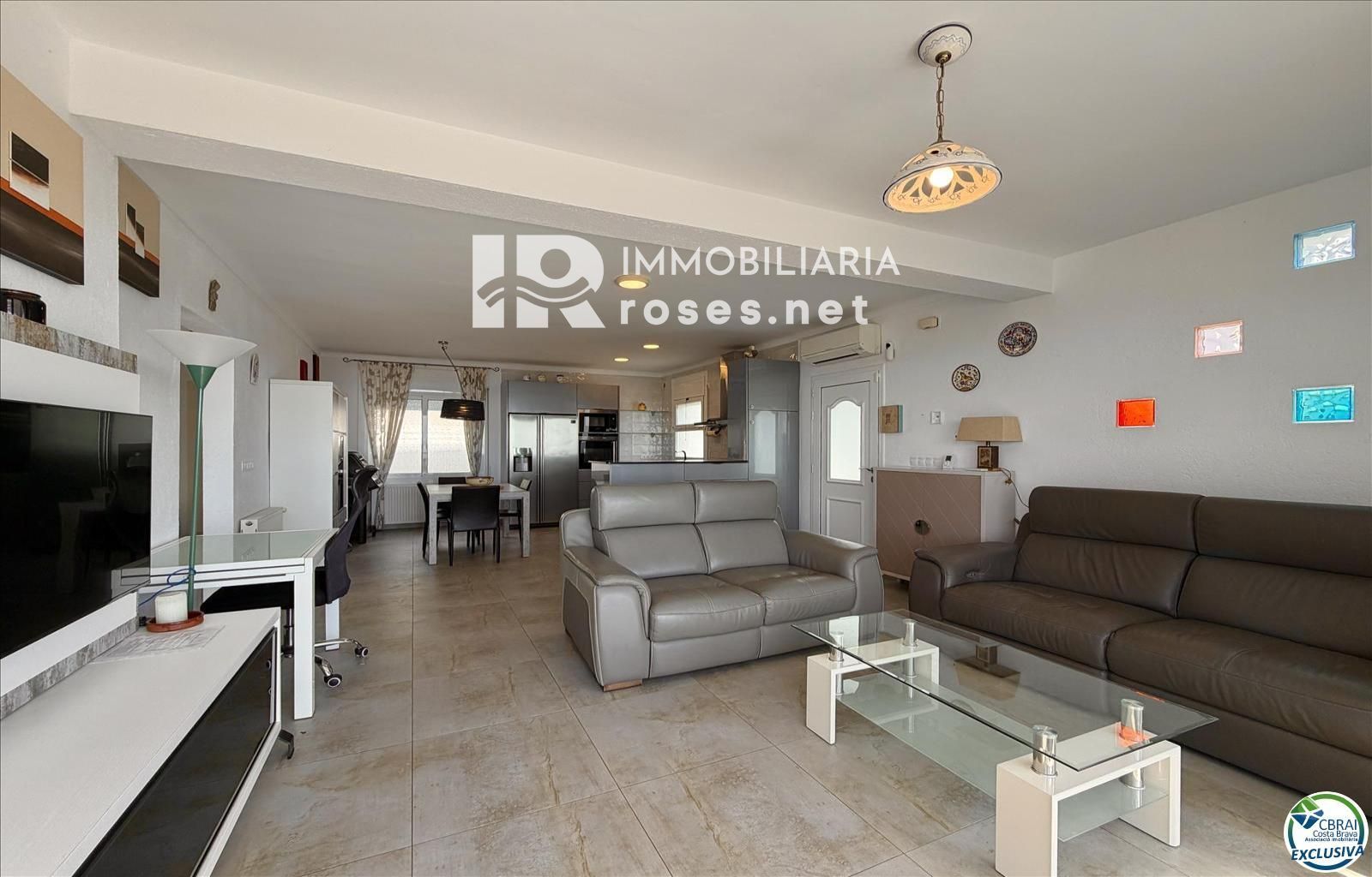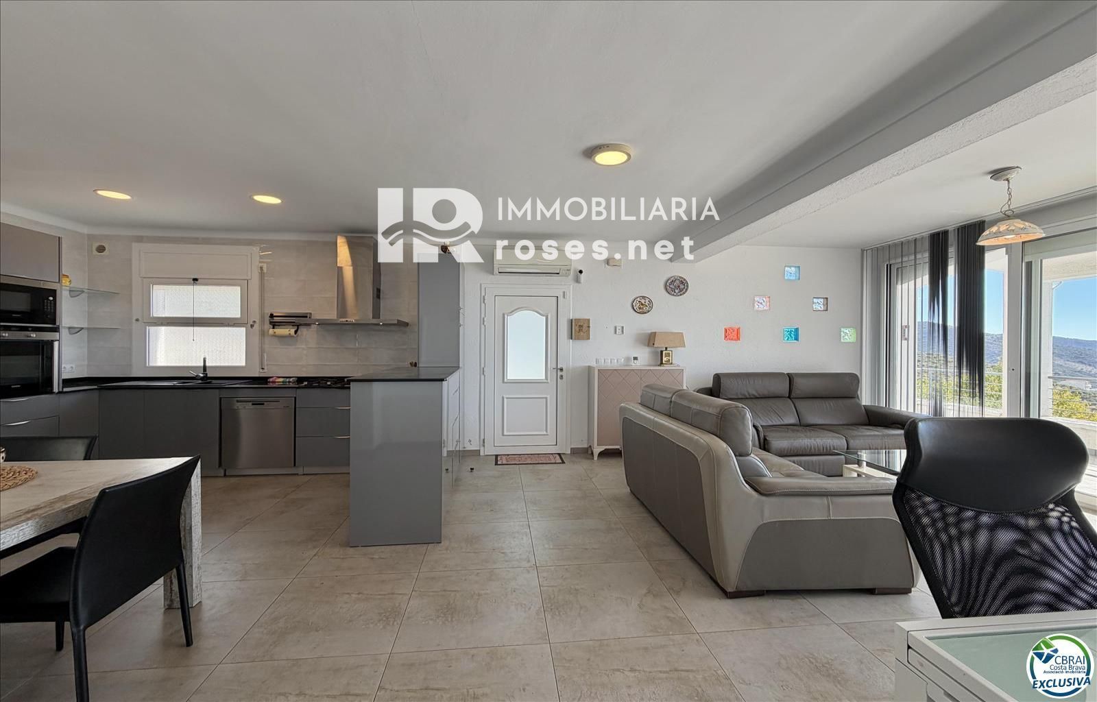 Maison accueillante à vendre dans le quartier calme de Mas Fumats, avec une vue panoramique spectaculaire sur la mer et la baie de Roses. D'une superficie de 75 m², elle comprend trois chambres, deux salles de bains, un lumineux salon-salle à manger avec accès à la terrasse et une cuisine entièrement équipée. L'espace extérieur comprend une piscine privée avec terrasse ensoleillée, idéale pour se détendre et profiter du paysage. Elle comprend également un garage fermé, un débarras, la climatisation et le chauffage au gaz naturel. Elle est vendue meublée et prête à emménager, à seulement cinq minutes du centre et des plages de Roses. Une opportunité unique pour ceux qui recherchent tranquillité, confort et une vue imprenable sur la Méditerranée.