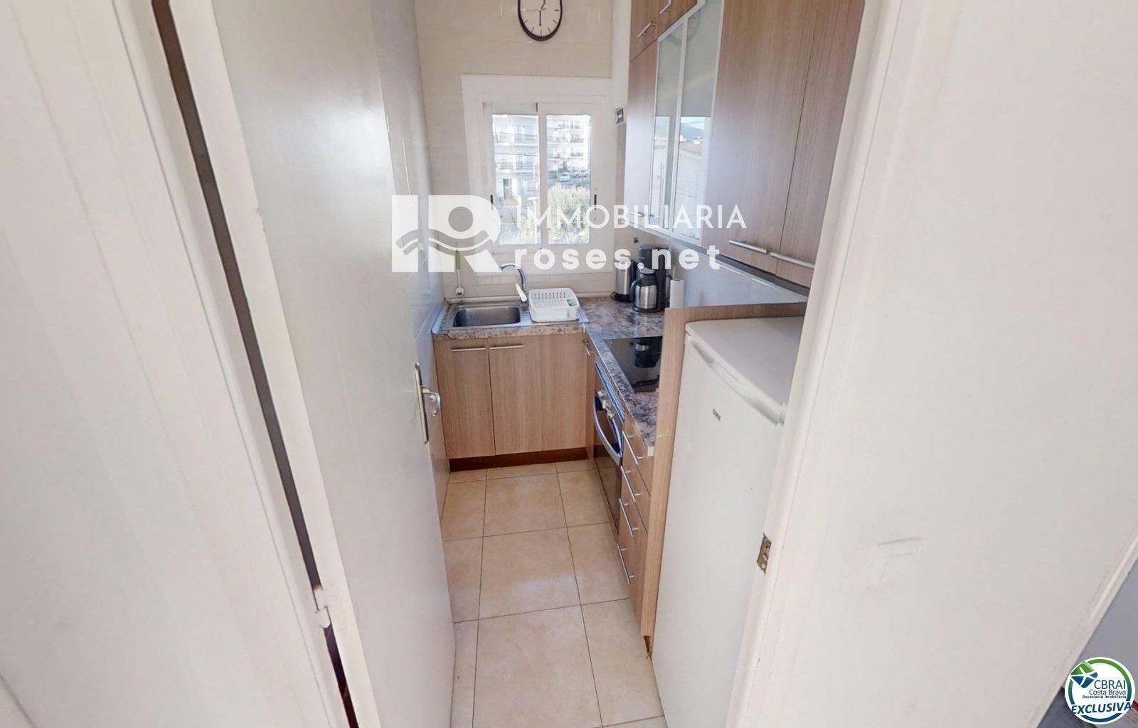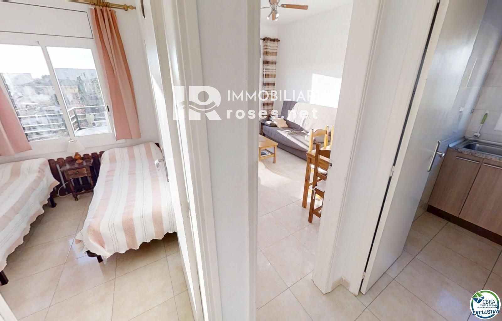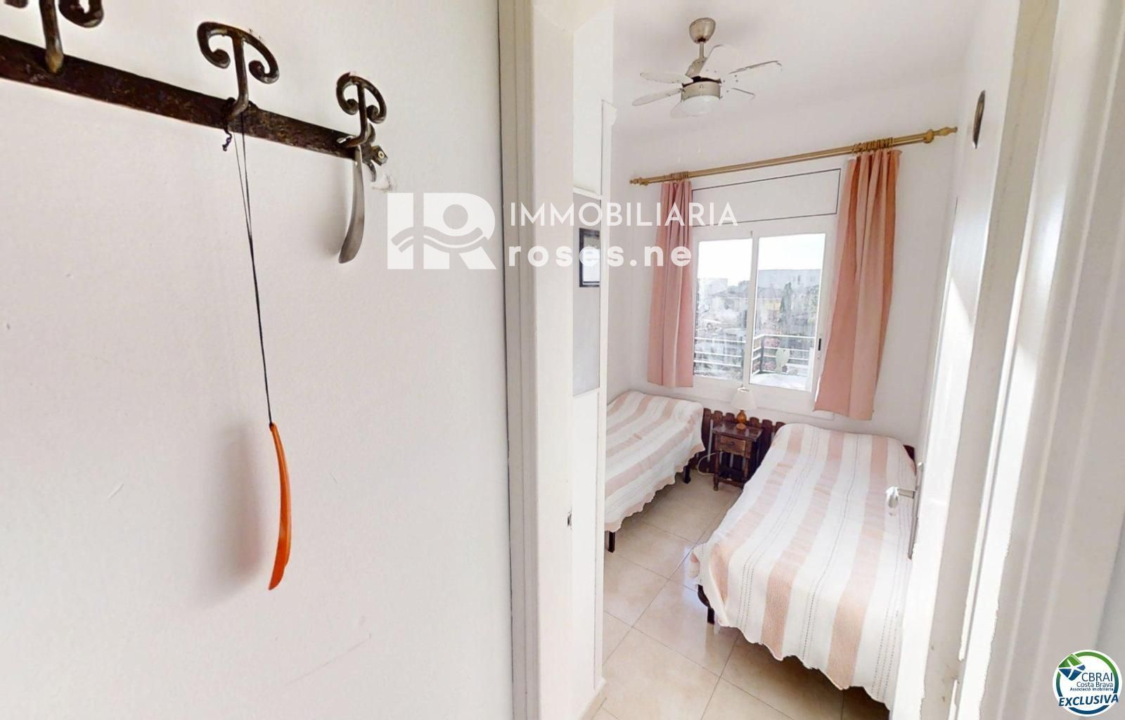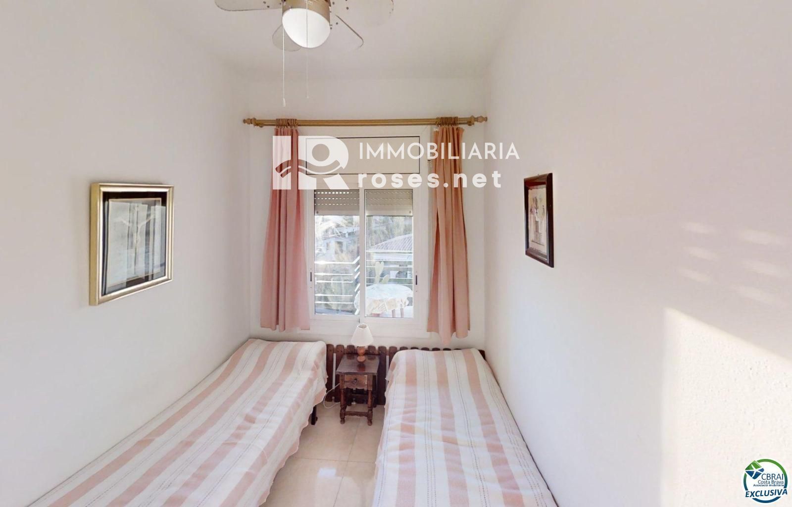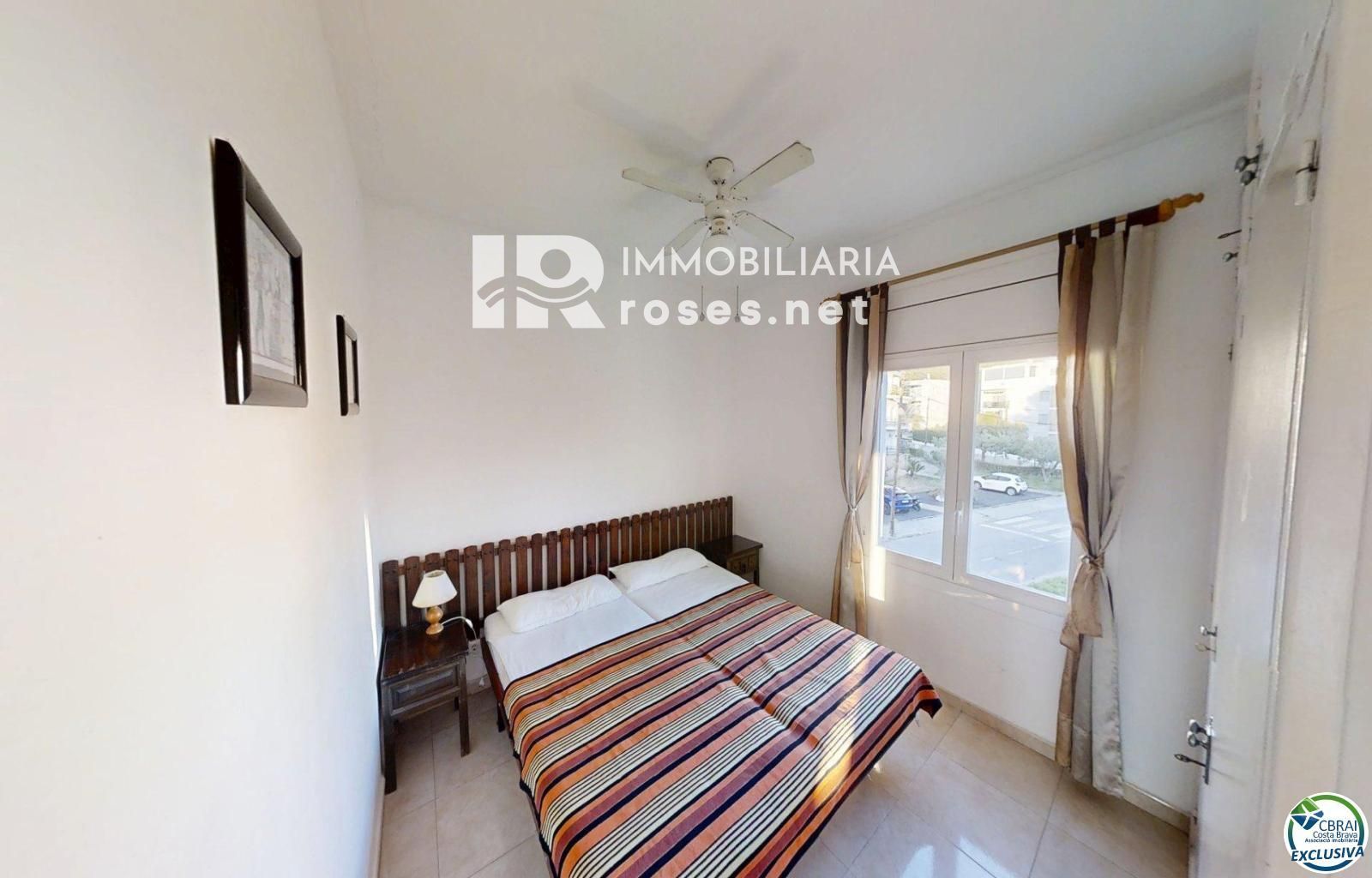 À vendre : un appartement confortable et accueillant situé à Mas Oliva, une résidence calme à seulement 10 minutes à pied du centre-ville. D'une superficie de 50 m², il comprend : un séjour/salle à manger lumineux, une cuisine séparée, deux chambres doubles avec placards intégrés, une salle de bains avec baignoire, une grande terrasse avec vue sur la piscine et la mer, une piscine commune, une grande intimité et un parking commun.